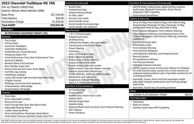 This TrailBlazer RS comes equipped with an impressive array of features, including: